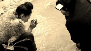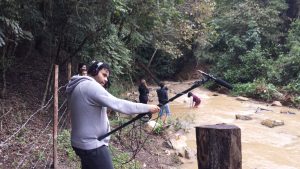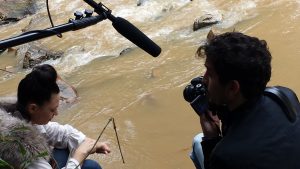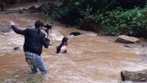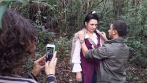 Neste quinto episódio, a água também estava presente como cenário! mas havia chovido o dia todo... e a equipe não poderia voltar e esperar chuva parar... Então foi assim mesmo.... um pequeno intervalo da chuva, e todos dentro do rio que passa no entorno da RPPN Duas Cachoeiras! A concentração da equipe e da atriz tinha que ser bem profunda para que tudo deste certo nesta condição especial...