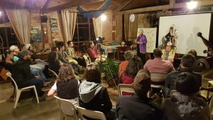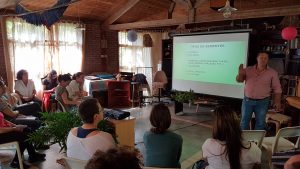 Havia, ainda, um agrônomo, Ivan, que já frequenta há anos o sítio e ajudou em vários preparativos para o curso e também dando “formato” ao jardim botânico, bolando, por exemplo , placas de identificação das espécies de árvores a partir de sucata de computadores. E dois representantes de jardins botânicos no interior de São Paulo – em Jundiaí e Itatiba – sedentos por informações valiosas para estruturar esses importantes espaços verdes.